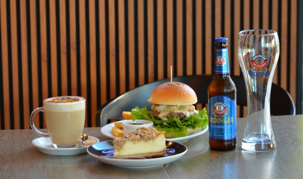 En este amplio local con terrazas y una atención impecable, donde se aprecia que el personal se esmera por hacer sentir a los clientes como en casa, probamos una de sus especialidades: la Hamburguesa Camarona, una combinación sabrosa y atrevida que une carne artesanal, camarones salteados, salsa de queso con hierbas, rúcula, lechuga y cebolla morada. Acompañamos con su Capuccino Candelaria, preparado con café italiano Illy 100 % arábica, leche vaporizada y un toque de ralladura de naranja con chocolate que lo vuelve inolvidable. Y para el final, nos deleitaron con un cheesecake de miel y nuez, equilibrado entre lo dulce y lo crujiente.