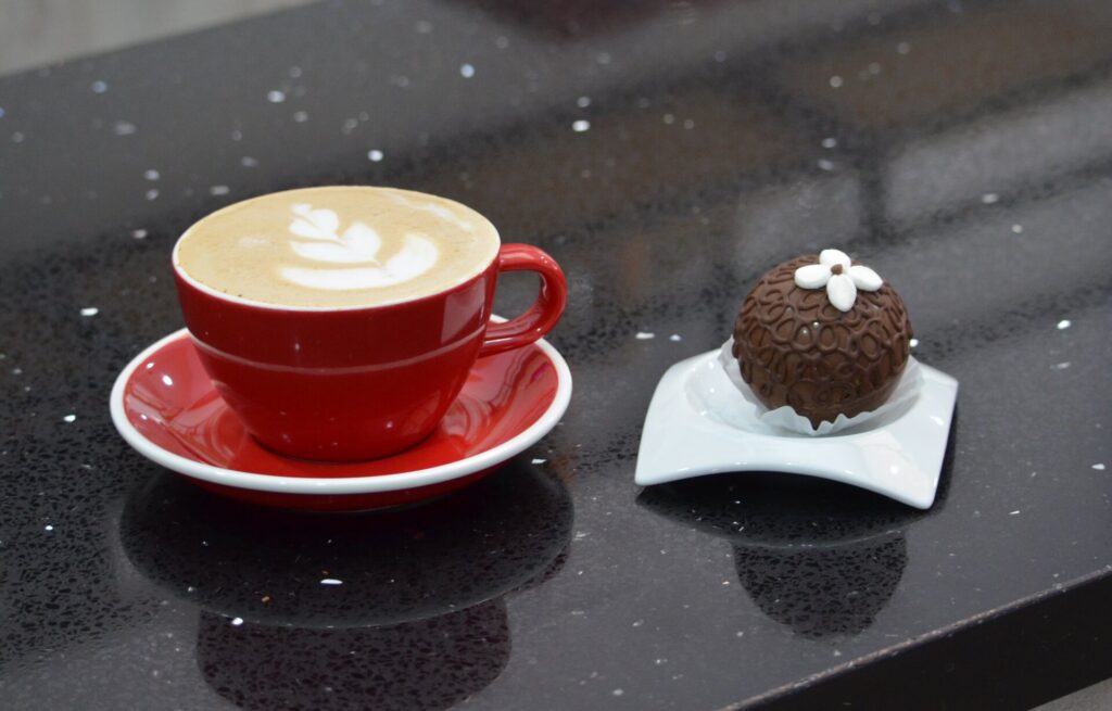 Nos recibieron con el favorito de la temporada: un mokaccino de sabor intenso —gracias a su mezcla de espresso, leche texturizada y chocolate 60 % cacao—, acompañado de una bomba de chocolate rellena de malvaviscos, que se funde lentamente en la taza creando una escena que despierta los sentidos y que ha causado furor en clientes de todas las edades. Servido con una sonrisa y en un ambiente que invita tanto a la conversación como a una pausa productiva, ya que Petra también cuenta con un espacio cowork, ideal para reuniones o encuentros grupales. Un grato descubrimiento, que los amantes del buen café no se pueden perder.